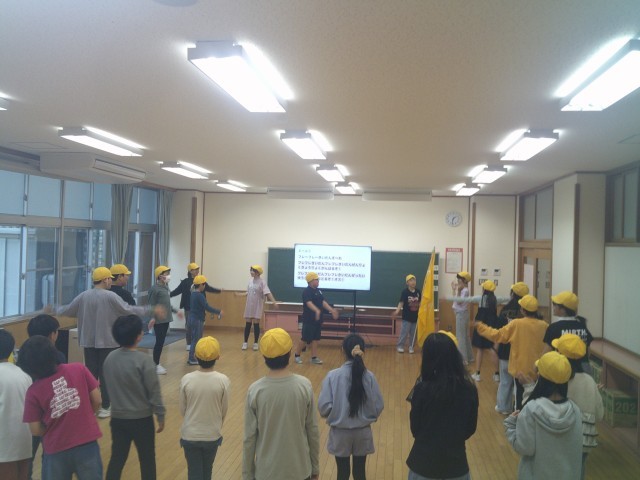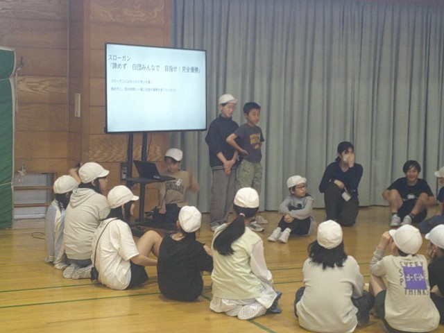 まもなく始まる応援合戦の練習。全校児童で取り組む前に、5年生が応援練習を6年生と取り組みました。5・6年生が協力して応援合戦を進めていきます。