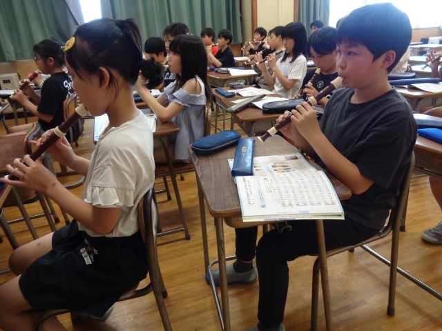 「オーラリー」をリコーダーで演奏しました。旋律が重なり合う美しさを感じ取りながら、演奏しました。