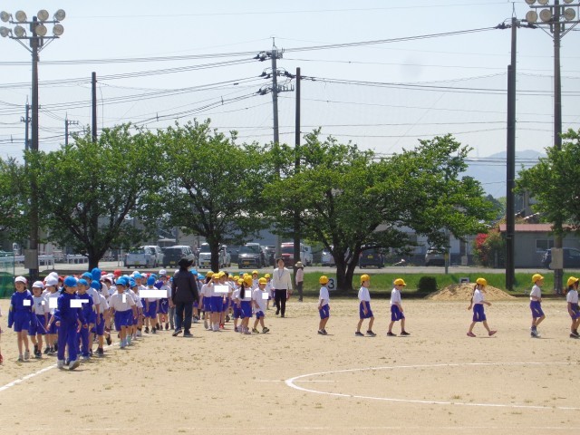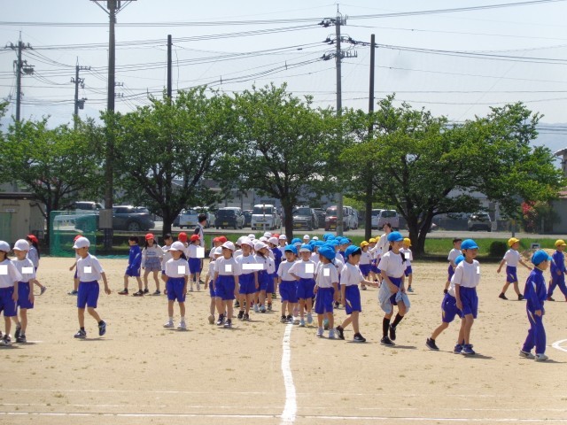 運動会の玉入れの練習を低学年で行いました。2年生が1年生をリードする形で入場行進。初めての練習ですが、先頭の2年生の活躍もあってスムーズに入場することが出来ました。退場もまずまずでしたが、もう少し練習を重ねていきます。