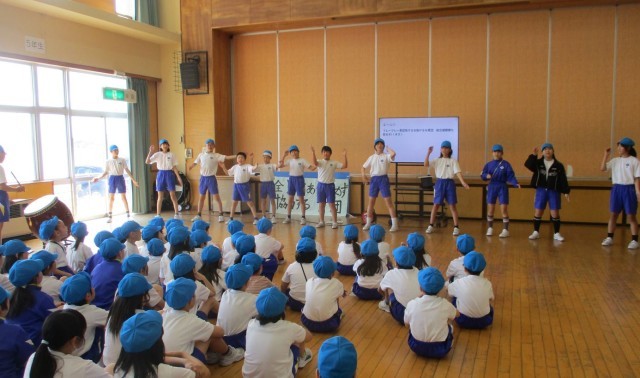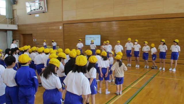 6年生は、考えてきた応援をみんなに紹介し、応援の活動を進めました。
