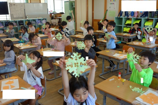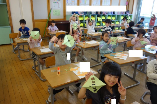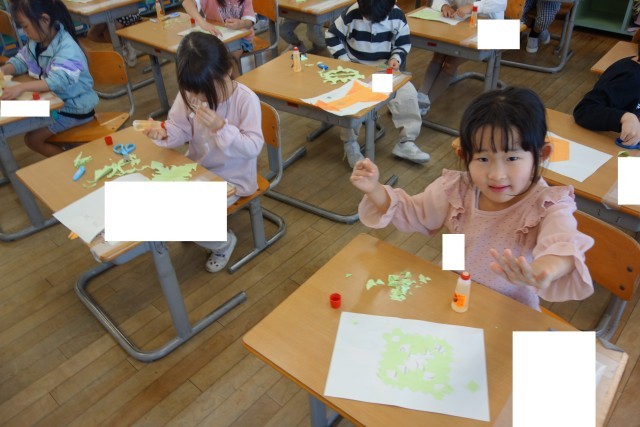 のりやはさみの使い方に慣れ親しみました。準備や後片付けも上手にできます。
