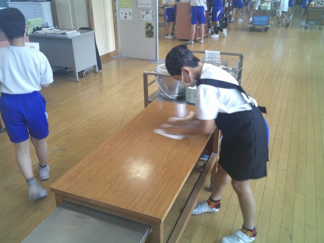 体育から帰って来るやいなや、すぐに給食の準備を始める姿を見かけました。気付いて、動けるところがすてきだなと感じました。