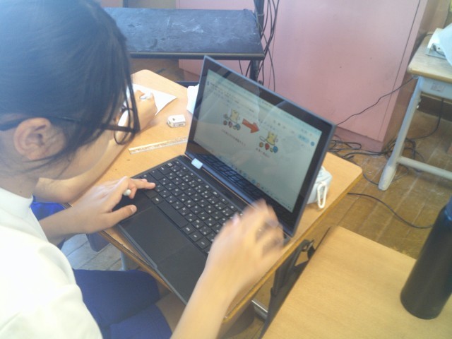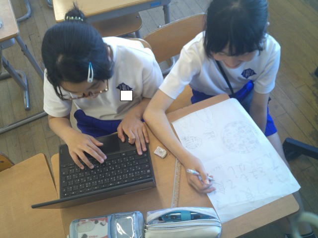 給食委員会の仕事をしている5年生。よく見てみると、食品ロスをへらそう!の文字。昨年度、総合の学習で学んだことが生活に生きています。