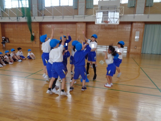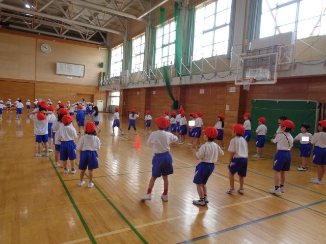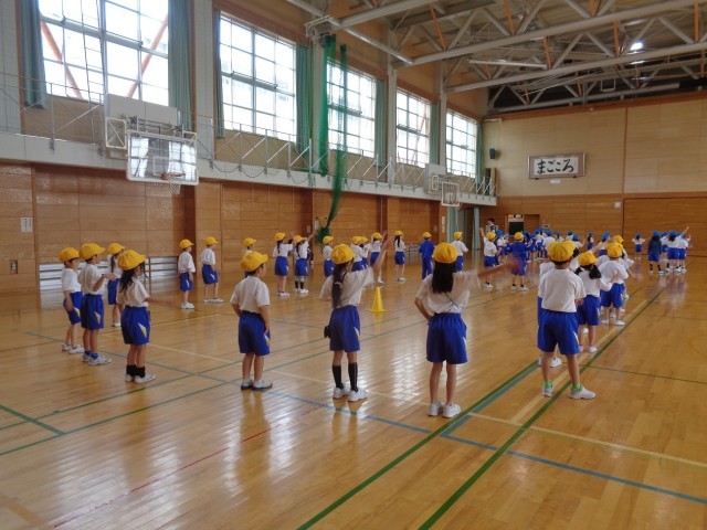 運動会に向けてダンスと玉入れの練習に力が入っています。今日は、一斉に立つところやバンザイの仕方など。細かい動きを確認し合いました。