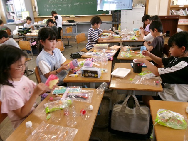友達と見合ったり相談したりしながら、形や色を工夫して、意欲的に作品づくりに取り組んでいました。