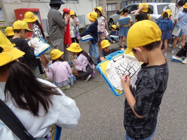 いろいろな発見をして、白地図にたくさん書き込むことができた子供たちです。