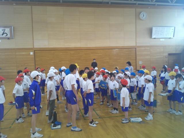 スポーツテストに学年がペアを組んで取り組んでいます。シャトルランや反復横跳び、上体起こしに挑戦しました。最後に、2年生から感謝の言葉をもらい、嬉しそうな5年生でした。
