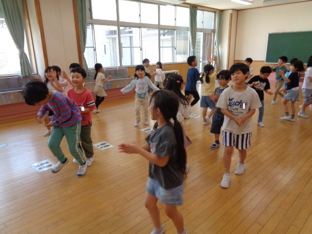 音楽に合わせて歩いたり、リズムに合わせて言葉を探したりしました。