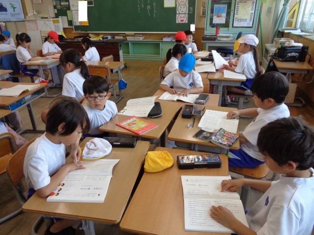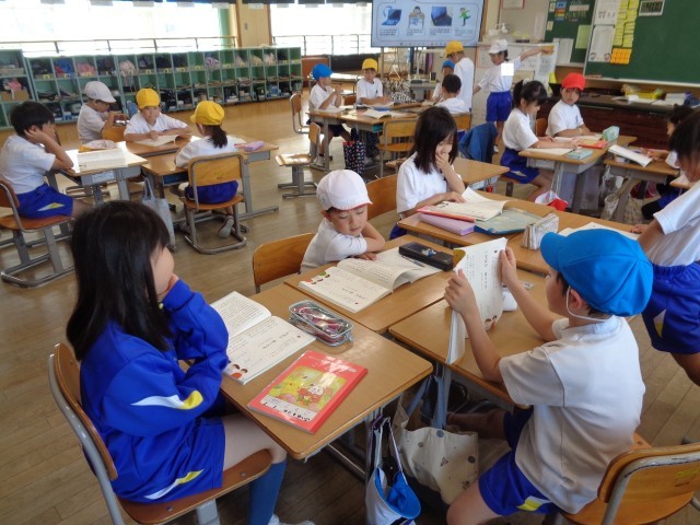 昔話を音読しています。今日は、グループに分かれて「丸読み」「段落読み」を行いました。少しずつ、上手になってきています。