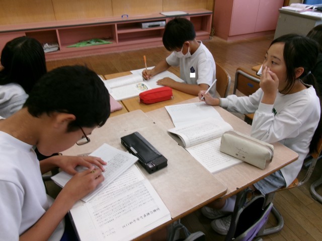 今日は、「言葉の意味が分かること」を読んで要旨を書きました。筆者の考えがどこに書いてあるのか、筆者が伝えたいことは何かということをよく考えて書いていました。仲間の考えと比べる中で、自分の考えをよりよくしようと考えを見直していました。