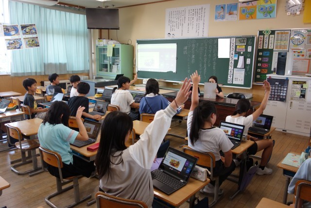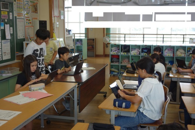 放送委員会の活動の様子です。子供たちは、新しく宮野小学校に赴任された先生や職員の方々をテーマにしたクイズを取材・作成しました。今日の委員会では、リハーサルを行いました。明日の昼の放送からクイズが始まります。