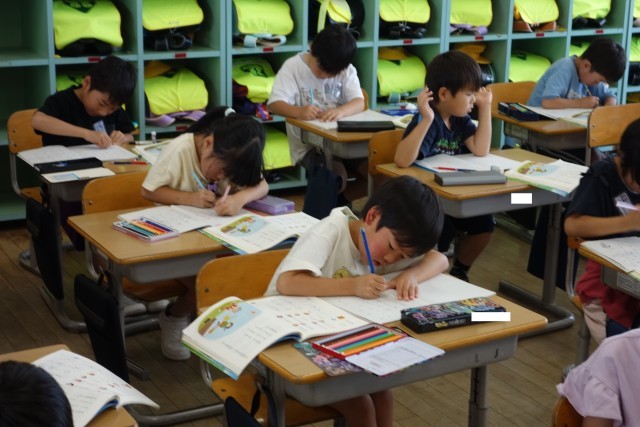 国語科の学習の様子です。のばす音の入った言葉を学習中。ノートの書き方にも慣れてきました。
