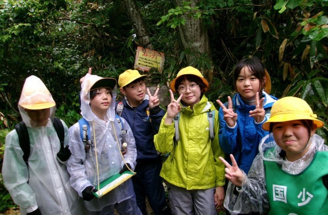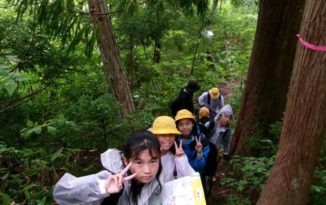雨の中の活動でしたが、班の仲間と協力して声をかけ合い、山の中にあるポイントを探していました。