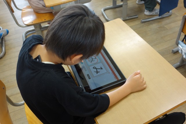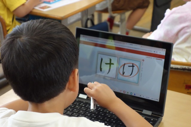 正しくひらがなを書けるようにがんばる子供たち。