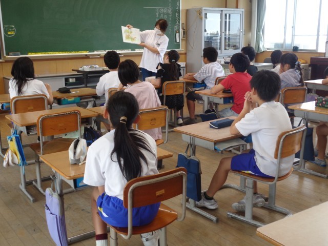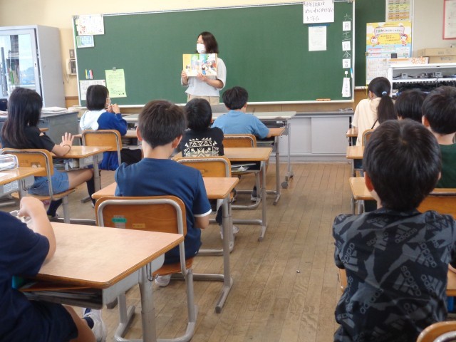 子供たちが楽しみにしている読み聞かせをしていただきました。1組も2組も集中して聞いていました。
