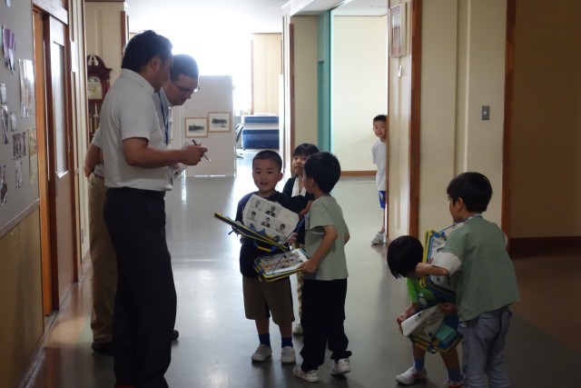 休み時間も学校探検。外国語の先生方にお名前を聞くことができた子供たち。サインをいただいて、とても嬉しそうな子供たちでした。
