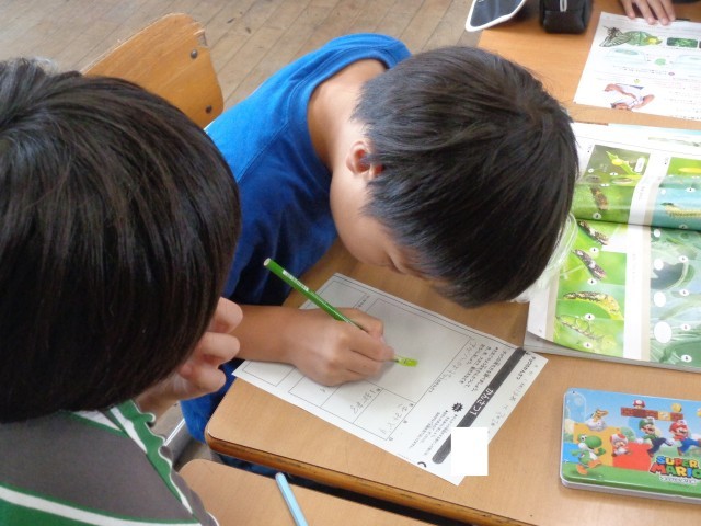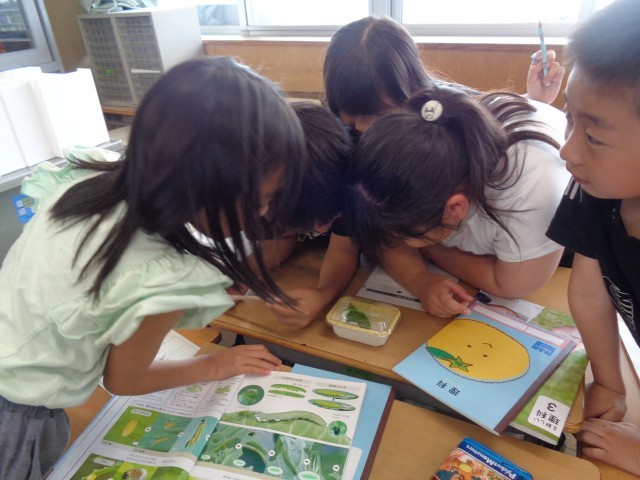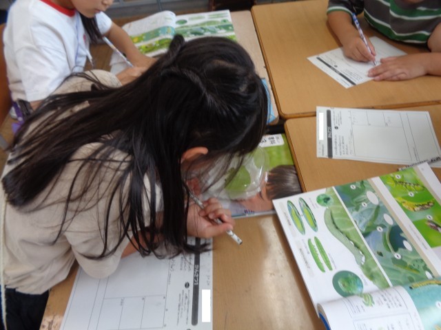 色や大きさなど毎日成長していく幼虫の様子に興味津々の子供たちでした。