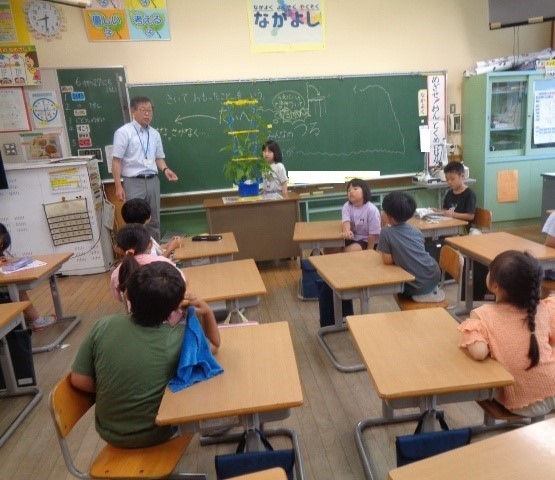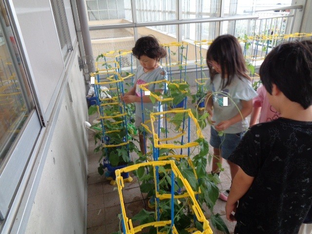 その後、友達の考えを聞いて「自分も!」と、つるを支柱に巻き付け始めた子どもたちの姿が印象的でした。