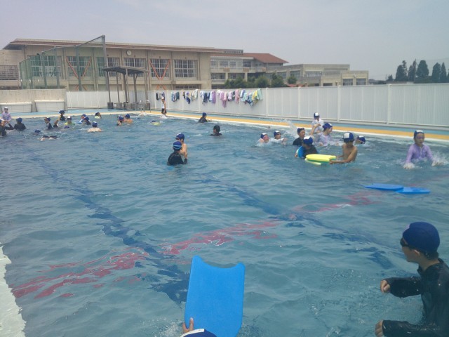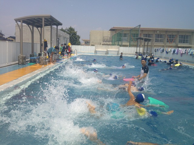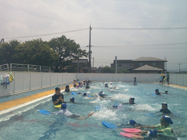 泳力別のチームに分けて、練習に取り組んでいます。練習を終えた後は、自由時間。楽しくプールで遊びました。