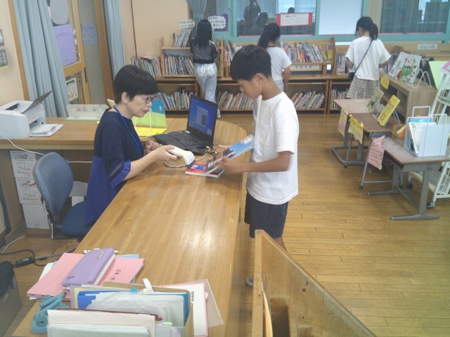 1学期の本の貸し出し最終日です。滑り込みで本を借りました。来週返却し、夏休みの本の貸し出し期間を待ちます。