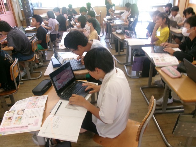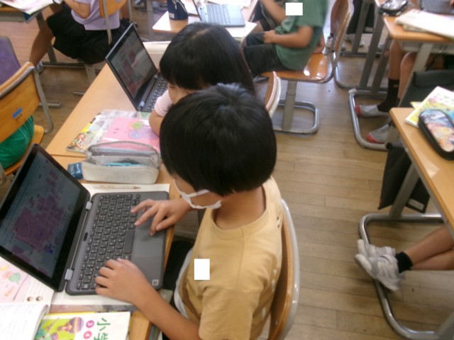 自分たちが食べている給食に使われている食材を思い出し、クロームブックに書き出しました。また、それがどのようなところで生産されているのかも予想し、調べることができました。