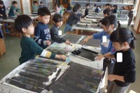 図画工作科の学習の様子です。がんばって取り組み続けてきたステンシルローラー版画...