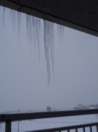 冷え込んだ今朝、登校した子供たちが目にしたのは、ベランダの大きなつららでした。理...