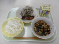 献立名:ごはん 牛乳 さばの銀紙焼き えのきのごま和え 関東だき甘いみそがたっぷ...