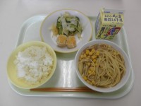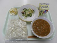 献立名:ソフト麺のカレーソース 蒸しパン 白菜とりんごのサラダ 牛乳1年生にとっ...