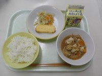 献立名:ごはん 牛乳 厚焼き卵 ブロッコリーとエリンギのソテー 豆腐の野菜あんか...