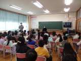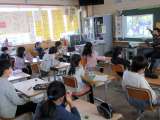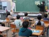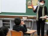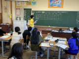 太鼓の先生をゲストティーチャーにお迎えして、宮野清流太鼓の秘密のお話をきいてい...