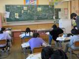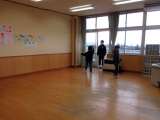 机をずらして 雑巾がけをした教室は意外に広い。 このあと、先生たちがワックス...