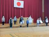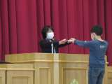 今日は1年間の最終日。代表児童が修了証を校長先生からいただきました。