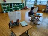 本日の修了式の様子をお伝えします。写真は、修了書授与の様子です。(中:5年生、...
