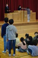 修了式前日、子供たちが企画・準備したクイズで楽しみました。