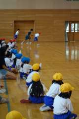 1年生のシャトルランの測定をお手伝いしました。一緒に走ってペースを教えてあげる...
