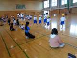 今日は、6年生と一緒に体育。シャトルランの測定に6年生が協力してくれました。
