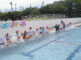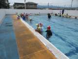 6年生は、1年生と一緒にプールに入りました。1年生と手を繋いで泳いだり、おんぶ...