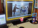 今朝の家庭学習チャレンジの表彰式が、わくわくさん情報局で放送中。 給食時間には校...