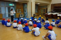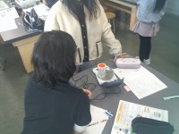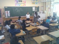 ALTの先生にグリーティングカードを送るために、先生の好きな物の形や色を聞き取り、カードに描く学習に取り組みました。 分からないことを質問して、より詳しく聞き取ろうとしていました。