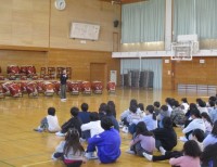 6年生は4年生に太鼓の演奏を引き継ごうとがんばっています。4年生の演奏を聞きながら、ついつい手が動いてしまう6年生がたくさん見られました。その後、お手本の演奏を4年生に見せ、迫力ある太鼓の演奏を聞かせ...