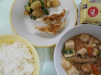 【今日の献立】ごはん  牛乳  焼きぎょうざ  華風和え  えびと豆腐のうま煮