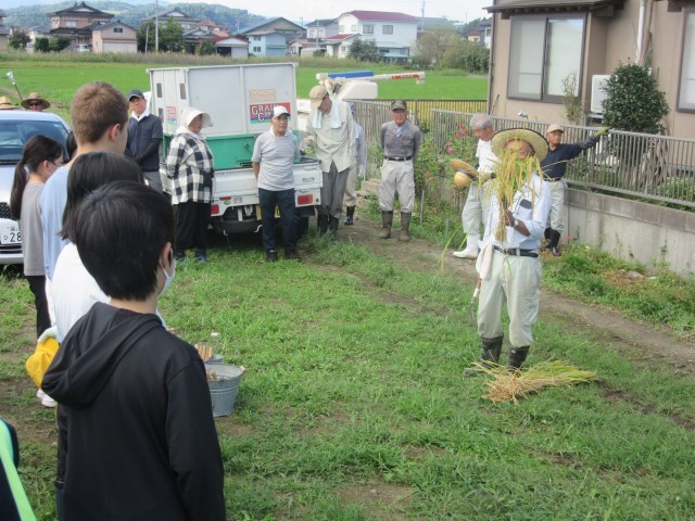 大切なお米を安全に刈り取るために、お話をよく聞いて臨みました。