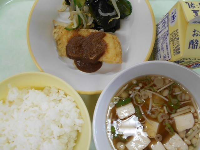 ごはん 牛乳 ホキの甘みそかけ 甘酢和え すまし汁