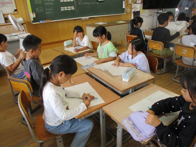 生活科の学習では「見つけよう!つたえよう!古里のすてき」という単元名で私たちの町「古里」のすてきを探しに行き、伝える活動を予定しています。行くコースが決まったので、同じグループの友達と聞きたい質問を考えました。