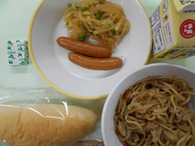 コッペパン(減) 牛乳 あらびきウインナー 大根サラダ 焼きそば ポケットチーズ