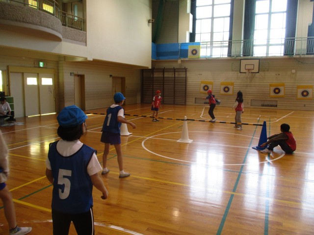 4年生の体育の学習では「プレルボール」に取り組んでいます。どのチームも上達してきたことで、長いラリーが見られるようになってきました。