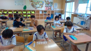 9+4や8+5など繰り上がりのある足し算を学習しています。あるお子さんが「計算はできるけれど、計算の仕方を説明するのが難しい・・・」と話していました。算数ブロック等の具体物を使いながら、繰り返し練習して身に付けていきたいと思います。