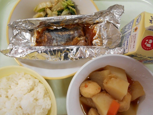 ごはん 牛乳 さばの銀紙焼き えのきのごま和え 関東だき