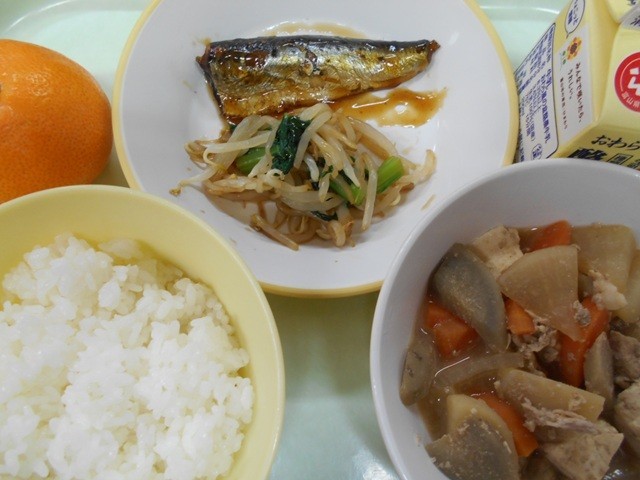 ごはん  牛乳  いわしの梅煮  もやしのおひたし  ごまけんちん  みかん